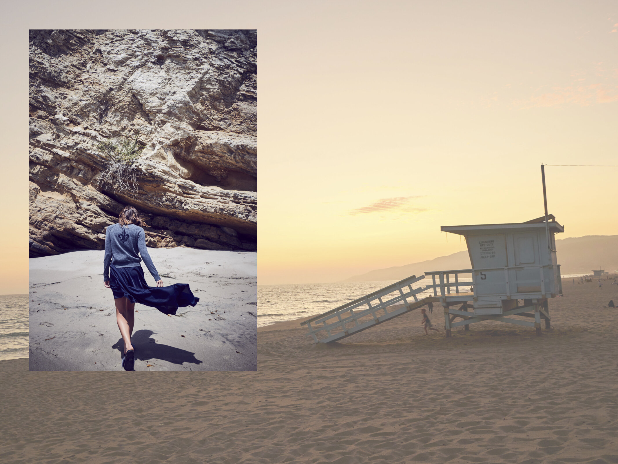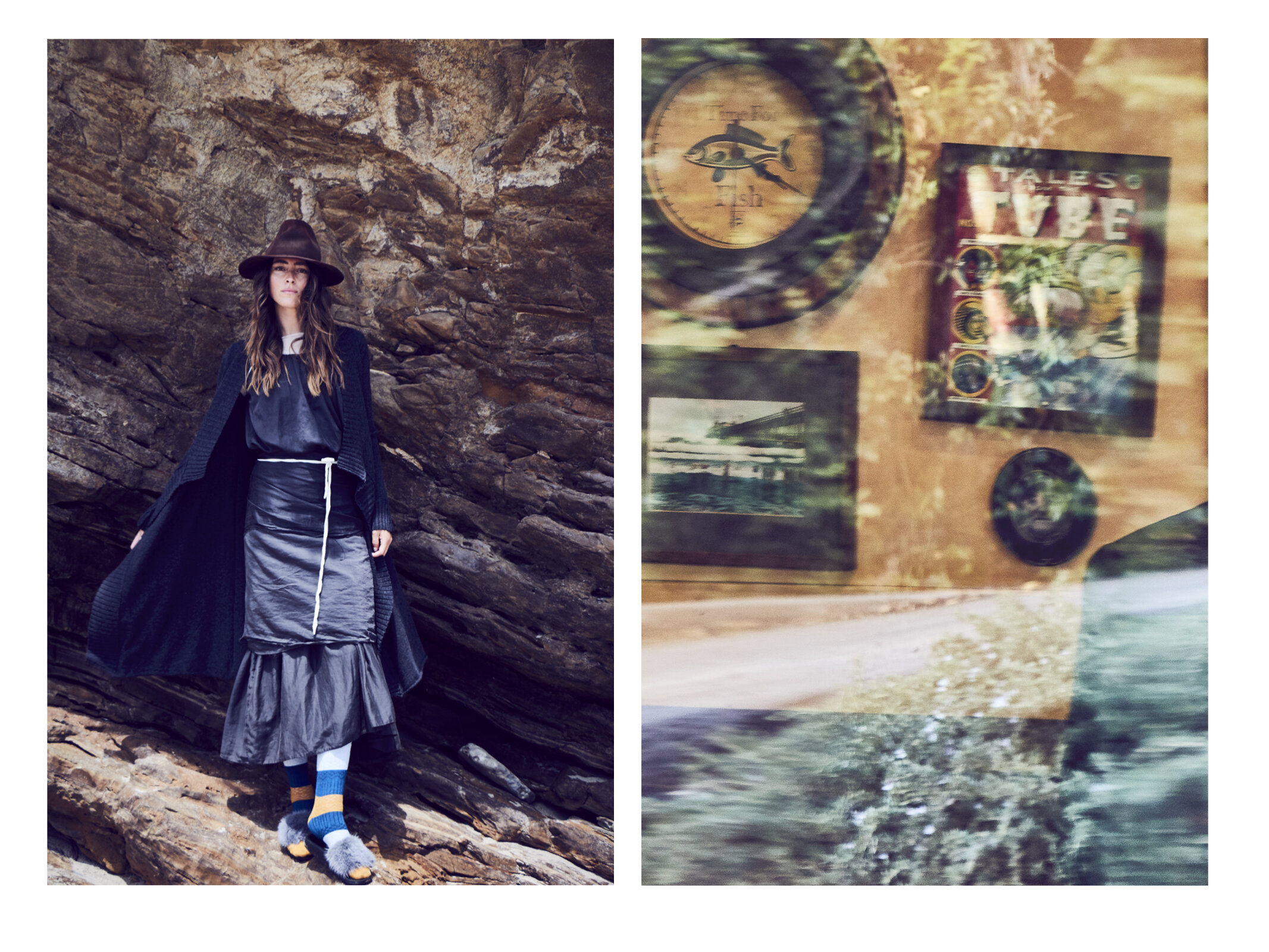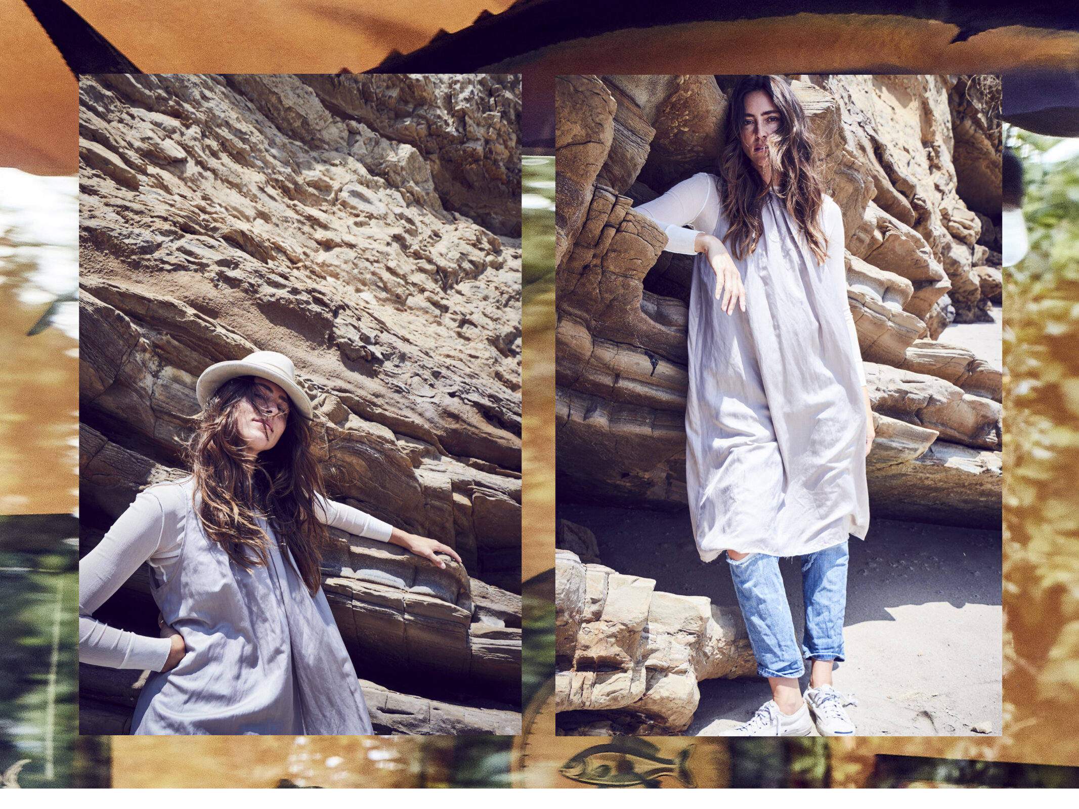 CUT-T DRESS / CASHMERE LEGGINGS / WHITE SILK BLOUSE