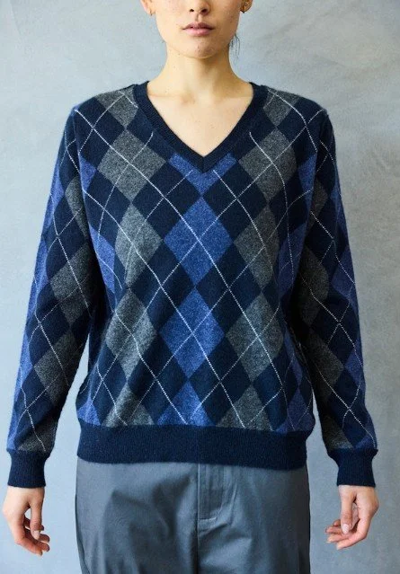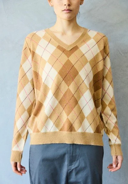 RELAXED FUN PATTERN ARGYLE V-NECK CARDIGAN SWEATER
